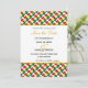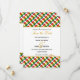 Convite elegante para salvar a data com borda do MAPA DE GANA em padrão xadrez e contorno dourado. A mensagem diz 'E os dois se tornarão um só'. Este versículo das Escrituras pode ser totalmente personalizado com sua própria mensagem e para suas celebrações especiais, por exemplo, aniversários, dias de independência, dias de patrimônio, reuniões familiares, etc. Papelaria combinando disponível. Orgulhe-se de sua herança no seu dia especial.