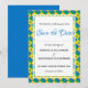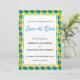 Elegante convite SAVE THE DATE com a bandeira de ST VINCENT & GRENADINES. O texto diz 'E os dois se tornarão um'. A redação pode ser personalizada com sua própria mensagem e para suas celebrações especiais, por exemplo, aniversários, dias de independência, dias de patrimônio, reuniões familiares, etc. Papelaria correspondente disponível. Orgulhe-se de sua herança no seu dia especial. Parte da Coleção de CASAMENTO ST VINCENT & GRENADINES na Berean Designs.