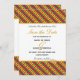 Convite elegante de SAVE THE DATE com o contorno de GRENADA & CARRIACOU em um padrão de azulejos e acabamento em dourado. A mensagem lê 'E os dois se tornarão um'. O design pode ser totalmente personalizado com sua própria mensagem e para suas celebrações especiais, por exemplo, aniversários, dias de independência, dias de patrimônio, reuniões familiares, etc. Papelaria correspondente disponível. Sinta-se orgulhoso de sua herança no seu dia especial.