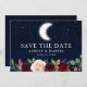 Guardar Celestial O Cartão de Anúncio do noivado de Data. Céu azul de água com estrelas e a lua. Aquarela Borgonha Azul Cor-de-rosa azul. Greenery Eucalyptus Sai.