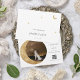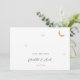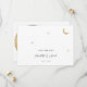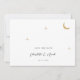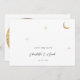 Um convite de casamento celestial moderno minimalista apresenta uma design simples e elegante. Inclui uma lua de folha de ouro e estrelas que brilham suavemente, colocadas sobre um fundo limpo. O convite usa a tipografia serif clássica, que adiciona um toque tradicional e formal com seu estilo limpo e limpo.