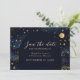 Announce your wedding in an elegant and memorable way with this celestial wedding save the date, featuring a deep navy blue background, refined gold celestial accents, and a romantic, star-inspired design. The back of the card includes a coordinated monogram, adding a luxurious and cohesive finishing touch.