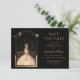 Célestial Black Save The Date Birthday Quinceanera Invitation apresenta um sol dourado, lua e estrelas num fundo preto. Dentro é sua foto favorita e sua Quinceanera personalizada salva as informações de data. Personalize editando o texto nas caixas de texto e adicionando sua foto favorita. Projetado por ©2024 Evco Studio www.zazzle.com/store/evcostudio