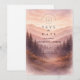 Um design sereno e atmosférico inspirado em paisagens montanhosas nebulosas e cenários florestais tranquilos. Camadas suaves de aquarela de pinheiros e colinas distantes desvanecem suavemente no fundo, criando profundidade e um clima calmo e romântico. A paleta suave de verde-salvia, cinza frio e marfim suave dá ao design uma elegância refinada e orientada para a natureza—perfeito para casais que se sentem atraídos por estéticas minimalistas e celebrações íntimas ao ar livre.