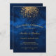 Este romântico guardar o cartão de data apresenta um céu noturno nebuloso azul e estrelas com um prato de ouro confetti.