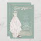 Um design boho divertido tem um apelo rústico, mas bonito. Um lindo vestido de casamento pendura de um cabide com um par de botas de vaqueiro a espreitar por baixo. Algumas anêmonas, magnólias e eucalipto são arranjadas de forma artística para lhe dar um pouco de talento floral. A beleza casual é uma forma excelente de descrevê-la. Escolha perfeita para aquele casamento no quintal ou no celeiro! Um verde sujo faz tudo pop! Simplesmente personalize as palavras e você está pronto. Boho Chic! Trata-se, de fato, de uma espécie.