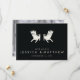 O perfeito Salve a Data para anunciar seu próximo casamento no lado do lago, na cabana ou no exterior. Possui a silhueta de duas cadeiras de muskoka/adirondack esbranquiçadas sobre fundo preto com texto para personalizar com seus nomes e data. Adicione sua foto de noivado no verso.