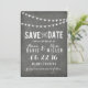 Ter um casamento rústico ou amar o estilo retrô? Personalize sua própria string de verão no quadro de controle leve "Salve a data". Personalize o seu "Save the Date" (Salvar a data), alterando o estilo da fonte, a cor e muito mais, clicando no botão "Customize It" (Personalizar) abaixo da imagem do produto.