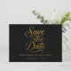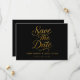 Faça uma declaração com este cartão de salvação da data de caligrafia a ouro romântico em um fundo preto elegante. Com um layout horizontal e um código QR para fácil RSVP, este design é perfeito para casamentos modernos, elegantes ou formais. Totalmente personalizável com seus detalhes.