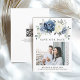 Foto de código QR de casamento floral azul empoeirado salva o cartão com buquê elegante de azul marinho, azul real, branco, marfim de champanhe, rosa de cor escamosa, botões de flores ranúculus e folhas de eucalipto verde-sábio e buquê de cor d'água elegante. Entre em contato comigo para obter ajuda sobre a personalização ou se você precisar de outro produto com este design.