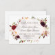 Encantador, Borgonha, Vermelho, design de Cartão Floral de Marsala. Apresenta lindas flores borgonhentas, vermelhas marsala, um hexágono semitransparente, todas sobre fundo branco. Use a ferramenta Personalizar para adicionar suas informações. Por favor, visite a minha Coleção Floral Burgundy Red Marsala.