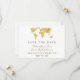 YOU CAN MOVE THE HEARTS AND AIRPLANE TO FIT YOUR DESTINATION! If you need help contact me. Destination Wedding Travel Gold World Map card design featuring a faux gold world map, two hearts and a airplane! Use Personalize tool to add your info, change fonts, the font colour. For more, visit my Destination Wedding Travel World Map collection.