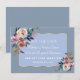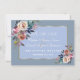 Desenho romântico e elegante com delicados buquês de flores em tons de rosa água-marinha desbotado, moldura dourada magnífica, em um fundo azul poeirento. No verso, um buquê de rosa empoeirada azul empoeirada com setas como divisor e iniciais dos noivos. Use a ferramenta Personalizar para adicionar suas informações. Para itens correspondentes, visite minha Coleção de Flores Azuis empoeiradas Douradas.