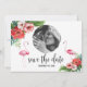 Design de cartão de destino único, exótico, com Buquês e flamingos das Flores de Aquarelas havaianas de Luau. Use a ferramenta Personalizar para adicionar suas informações, alterar fontes, cores. Basta substituir esta foto pela sua, colocando-a para trás. Para encontrar itens, por favor, visite minha Coleção de Casamentos Tropical Floral Luau Flamingo.