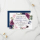 Desenho de cartão encantador com belos buquês/ grinaldas de flores de lavanda aquarela e azul-marinho, divisor floral, belo script de escrita à mão, um hexágono semi-transparente e fontes especiais. Use a ferramenta Personalizar para adicionar suas informações e fazer alterações. Para itens correspondentes, visite minha Coleção Floral Lilás Azul-Marinho.