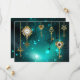 Chaves Douradas e antigas com engrenagens e marcadores penduram em correntes douradas sobre fundo verde luminoso.