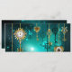 Chaves Douradas e antigas com engrenagens e marcadores penduram em correntes douradas sobre fundo verde luminoso.