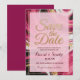 Set a sophisticated tone for your wedding with this luxurious Save the Date invitation. The design features a dramatic marble swirl pattern in rich burgundy, blush pink, or black, elegantly enhanced with flowing gold glitter veins and a sparkling gold heart icon.