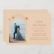 Champanhe Místico Chic Dourado Sun Moon Star Astronomy Cosmic Galaxy Celestial Save As Datas apresentam um sol dourado, lua e estrelas em um fundo de champanhe. Dentro é a sua foto favorita e o seu personalizado salva as informações de data. Personalize editando o texto nas caixas de texto. Projetado para você por ©Evco Studio www.zazzle.com/store/evcostudio