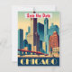 Convite de Chicago, Illinois para salvar a data em estilo vintage.