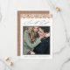 Script de caligrafia moderno em verde sage com renda rústica e visual de aniagem no verso do cartão de salvar a data do casamento.