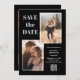 Esse casamento preto moderno e na moda, que salva os cartões de data, apresenta três fotos do casal, além de texto ousado e suave sobre cinzas pretas. Adicione seu código QR para o seu site de casamento ou para os convidados para o rsvp online.