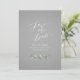 A caligrafia moderna salve a data com design de folhagem verde-aquarela em fundo de cinza, simples e elegante, excelente para casamento rústico, casamento da primavera e casamento de verão. Ver todas as peças correspondentes na coleção