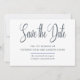 Cinzas de carvão negro elegante e eterno e design branco. Salvar a Data é escrito em belo texto de script. Seus nomes, data do casamento e local a seguir. Você pode incluir uma mensagem adicional no verso.