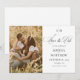 Elegant wedding Save the Date with photo. Classic colors of white with black script with photo. Minimalistic and modern wedding save the date.