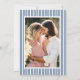 Announce your wedding with this refined navy blue hydrangea photo save the date, designed for couples who appreciate classic color and enduring style. A delicate hydrangea illustration anchors the design, complemented by graceful calligraphy and structured serif type for a balanced, timeless composition. The back features your vertical engagement photo layered over a crisp navy and white stripe pattern, adding a nautical-inspired touch with tailored elegance. The deep blue tone is perfect for coastal weddings, formal church ceremonies, and traditional celebrations. Customize your details and photo to create a cohesive save the date that sets a confident, sophisticated tone for your wedding stationery.