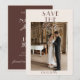 This modern & retro funky minimalist Wedding chocolate brown and ivory photo Save The Date Template is great for you. If you are looking for a pretty, elegant and easy to customize brownish image Wedding Save The Date Template .A very elegant simple ivory cream script wedding save the date on brown background on the back and ivory on the front. With easily customized photo. Grab this stylish wedding save the date and make your invites truly engaged.