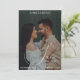 Announce your celebration with refined style using this classy and elegant black and white photo design. Showcasing a full-bleed photograph paired with graceful script lettering, this modern yet timeless layout highlights your love story in a clean, sophisticated way. The monochrome palette adds a touch of luxury while keeping the focus on your special moment. Perfect for couples who appreciate understated elegance and contemporary design, this customizable piece allows you to personalize names, date, and location for a polished and memorable announcement.