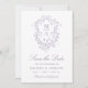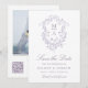 This save-the-date wedding photo card features a classic French Victorian lavender floral crest, with a QR code and custom text on the back. For more advanced customization of this design, please click the BLUE DESIGN TOOL BUTTON above!