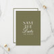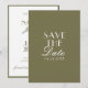 This modern & retro funky minimalist boho Wedding olive green and white Save The Date Template is great for you. If you are looking for a pretty, elegant and easy to customize photo Wedding Save The Date Template. A very elegant simple moss green script wedding save the date on boho white background on the back and green on the front. Grab this stylish wedding save the date and make your invites truly engaged.