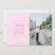 This classy elegant save the date card in pastel pink features a minimalist design with "save our date" styled in a mixture of classic text and elegant calligraphy script that lends a sophisticated, classy style with old money vibes. It also includes a placeholder for your photo that covers half of the front of the card. The back of the card includes an editable placeholder to indicate your wedding website URL, which can also be deleted if the URL is not yet available.