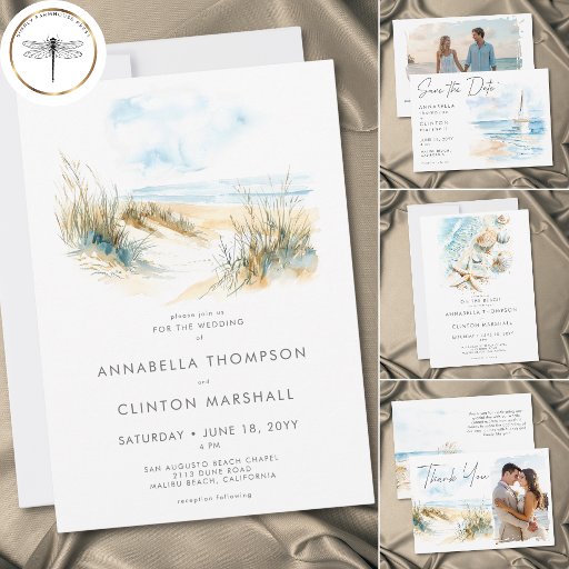 Reserve A Data Coastal Beach Modern Watercolor Wedding