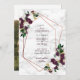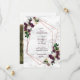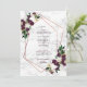 Moderno e moderno, este bonito casamento Salve o design do Cartão de Data com um falso geométrico de cobre embelezado com lindos florais de aquarelas e eucalipto verde num marsala de ameixa e branco, sobre uma textura de mármore branco sujo. A parte traseira da placa apresenta sua foto favorita do noivado. Parte de uma suíte de casamento. Copyright Elegant Invites, todos os direitos reservados.