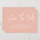 A caligrafia moderna economiza a data em pêssego pastel com um código QR digitalizável para um site ou informações de contato no verso.