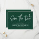 A caligrafia moderna economiza a data em verde esmeralda com um código QR digitalizável para um site ou informações de contato no verso.