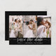 Código QR - Paisagem Horizontal Moderna e Elegante Três (3) Foto Salvar o Magnete de Casamento de Data com tipografia de script com letra de mão. O ímã para salvar o convite de data inclui tipografia de script e chic e design simples para a qual você pode adicionar sua fotografia personalizada de noivado.