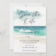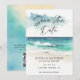 Anúncio de Save the Date - Uma linda cena de praia em aquarela com tipografia moderna em letra cursiva. Código QR no verso do anúncio. Save the Date faz parte de uma coleção.