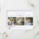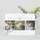 Flor de lavanda em aquarela rústica e elegante com colagem de 3 fotos em formato horizontal, tipografia em cartão de save the date azul empoeirado com código QR.