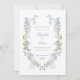 Apresentando o nosso elegante casamento, salve o cartão de data com um código QR, adorado com uma impressionante estrutura floral azul e verde e caligrafia clássica! Se você está procurando um casamento, salve o cartão de data que exude sofisticação, luxo e estilo, esta é a combinação perfeita para você. O macio e poeirento quadro de flor de aquarela azul adiciona um toque de elegância vintage ao cartão. A elegante caligrafia acrescenta um toque pessoal à carta que é romântica e encantadora.
