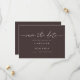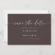 Este cartão de data de salvamento apresenta uma caligrafia manuscrita elegante combinada com uma tipografia moderna e limpa em um rico fundo marrom mocha. O layout minimalista cria um visual atemporal que funciona lindamente para casamentos modernos, clássicos ou de outono. O verso inclui um código QR para que os convidados possam visitar facilmente o site do seu casamento para detalhes de RSVP e informações do evento. Personalize os nomes, data e local para anunciar sua celebração de uma maneira simples e elegante.