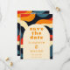 Este convite de casamento groovy, colorido, retrô, ondulado e boho pode ser personalizado com suas informações em tipografia moderna e uma foto especial junto com o código QR do site do seu casamento no verso. Projetado por Thisisnotme©