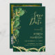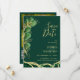Crie cartões únicos verde esmeralda e dourados salvos à data decorados com uma ramificação de eucalipto e um padrão de estilo agado no lado frontal. Os modelos facilitam a digitação de nomes, data e local, site e o upload de sua foto no verso. Você também pode adicionar seu código QR - certifique-se de adicionar seu site para que o código QR funcione como deve.