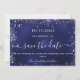 Um moderno e elegante Salve a Data para um casamento. Um fundo azul marinho decorado com faíscas prateadas falsas. A cor azul é irregular. Personalize e adicione uma data e nomes. O texto: Salvar a Data é gravado com um script de estilo com letra de tendência grande com alternâncias. Adicione a sua url de web ao seu próprio site de casamento no verso para criar um código QR.