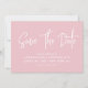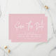 A caligrafia moderna salva a data em rosas claro suaves com um código QR digitalizável para um site ou informações de contato no verso.