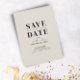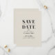 Um bege/guincho luminoso minimalista salva o cartão de data sem imagem, com uma combinação de fontes em negrito e de script para o visual chic, no verso um monograma e um código QR para seu site ou registro. Se você precisa de peças que não estejam na coleção, por favor me avise (Maria) feliz em ajudar!