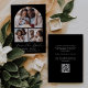 Este simples e minimalista Cartão Salvar a Data apresenta um arco de colagem de 3 fotos acima das palavras "Salvar a Data" em um elegante guião branco, seguido pelos nomes do casal, data do casamento e cidade em sans serif em um fundo preto. Adicione uma mensagem mais detalhada com informações adicionais sobre o inverso, juntamente com um código QR para ajudar seus convidados a visitar seu site de casamento.